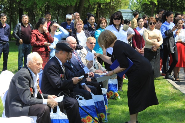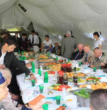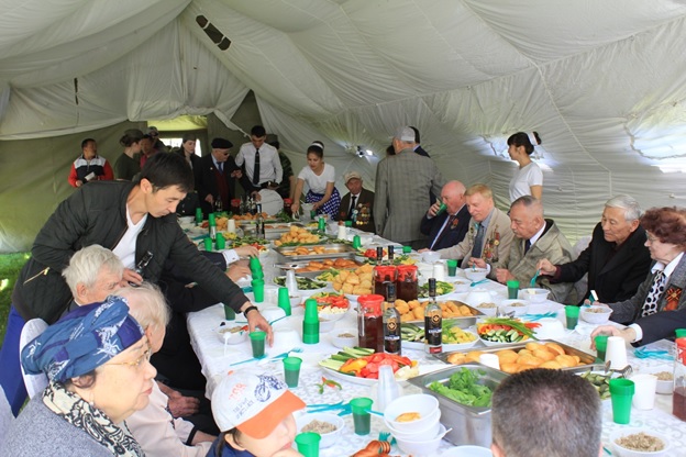 Приглашенным, ветеранам ВОВ был дан торжественный обед и вручены конверты с материальной помощью и подарочные пакеты с продуктами.