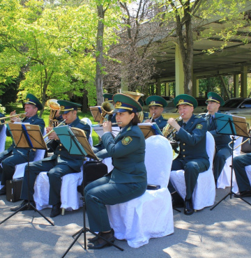 Всех присутствующих мужчин, поздравили с Днем защитника Отечества и с Днем Победы. Искренне пожелали им оставаться мужчинами бравого дела, благородного поступка, искреннего уважения, настоящей чести, щедрой души и отважного сердца. Далее была представлена концертная программа силами женского коллектива, военным оркестром и военнослужащими Академии пограничных войск КНБ РК.