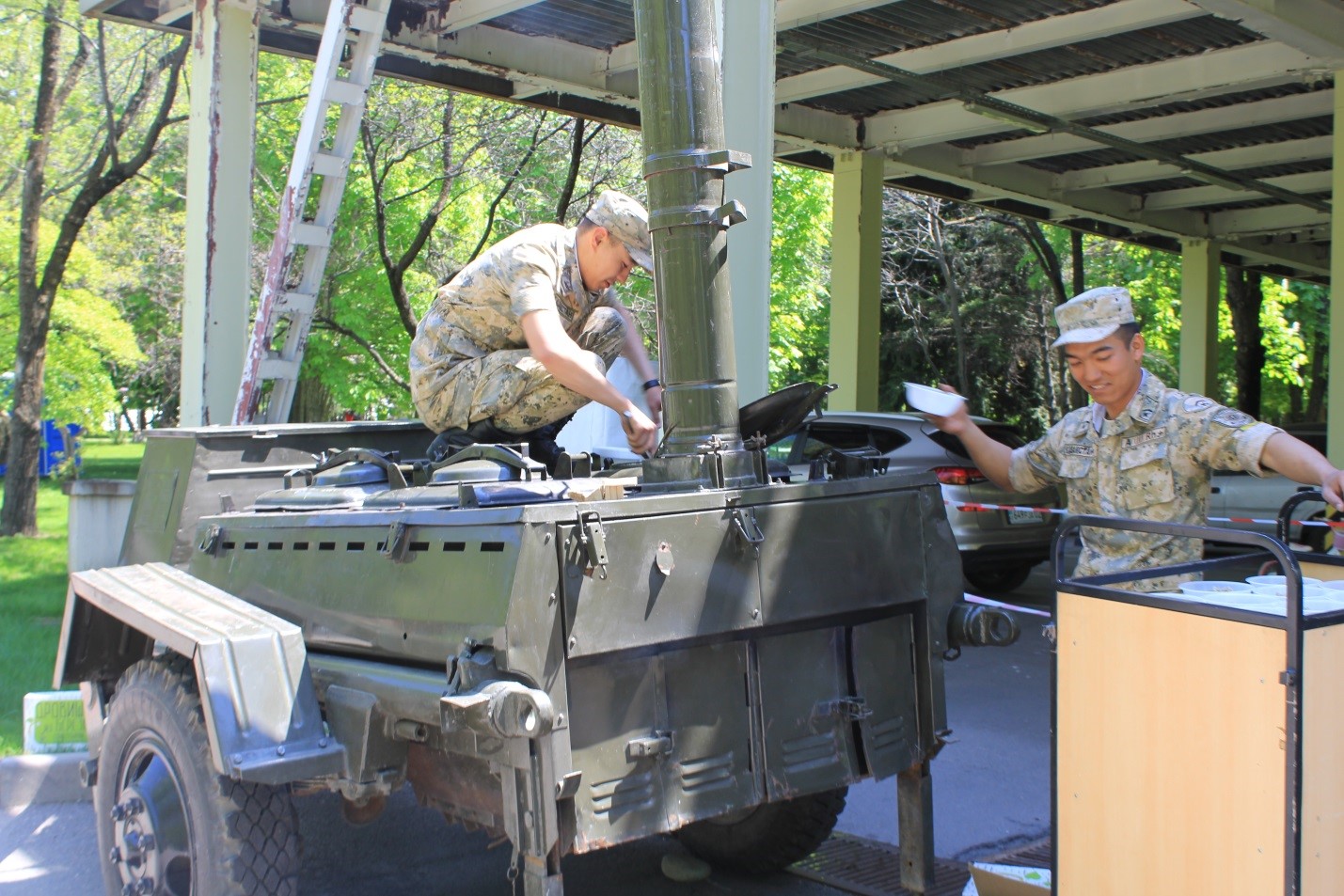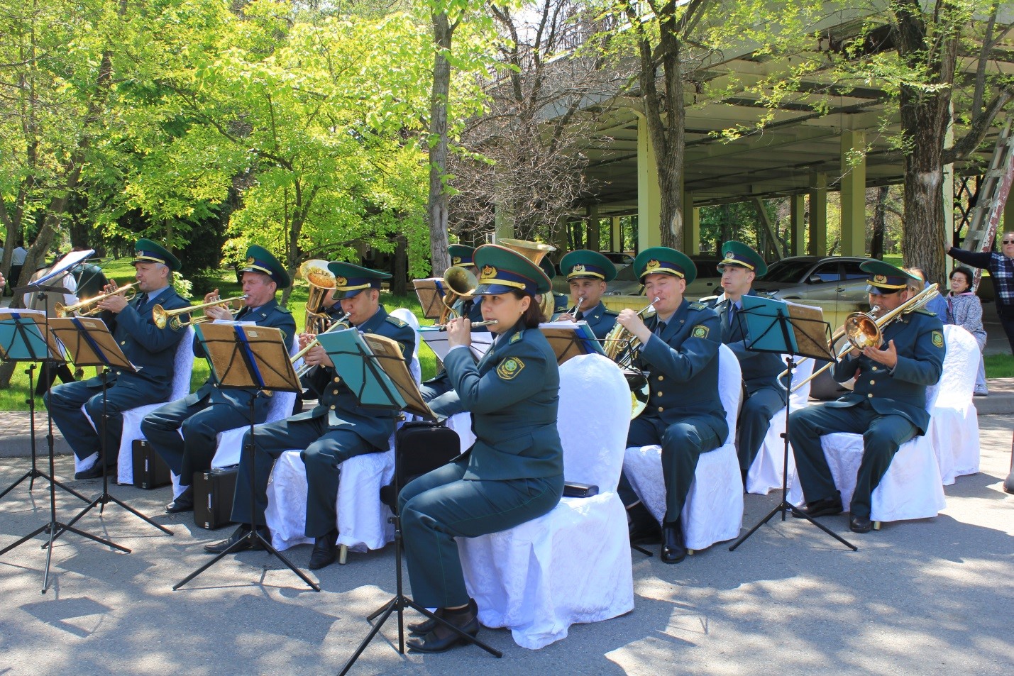 На праздничное мероприятие для участия были приглашены военнослужащие Академии Пограничной службы КНБ РК и военный оркестр Академии Пограничной службы КНБ РК. Организована полевая кухня с раздачей перловой каши с тушенкой. От Академии предоставлена военная палатка, которую развернули на территории Филиала АО ЛОК «Ок-Жетпес» Алматы», где силами женщин были накрыты столы для гостей.